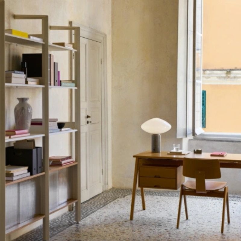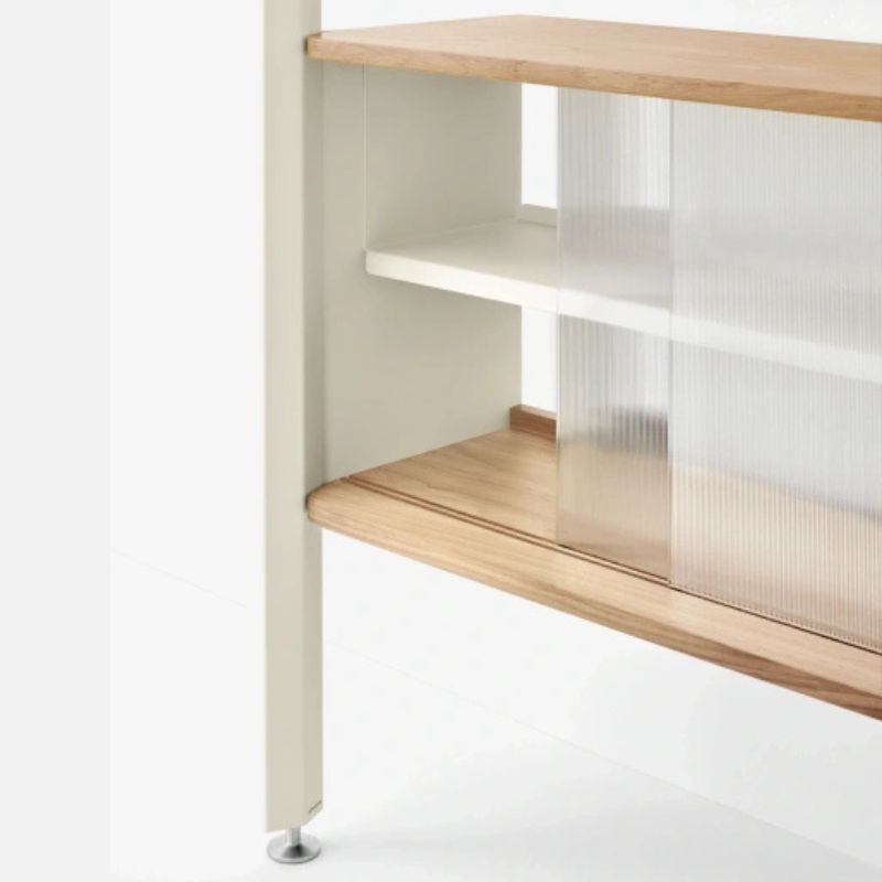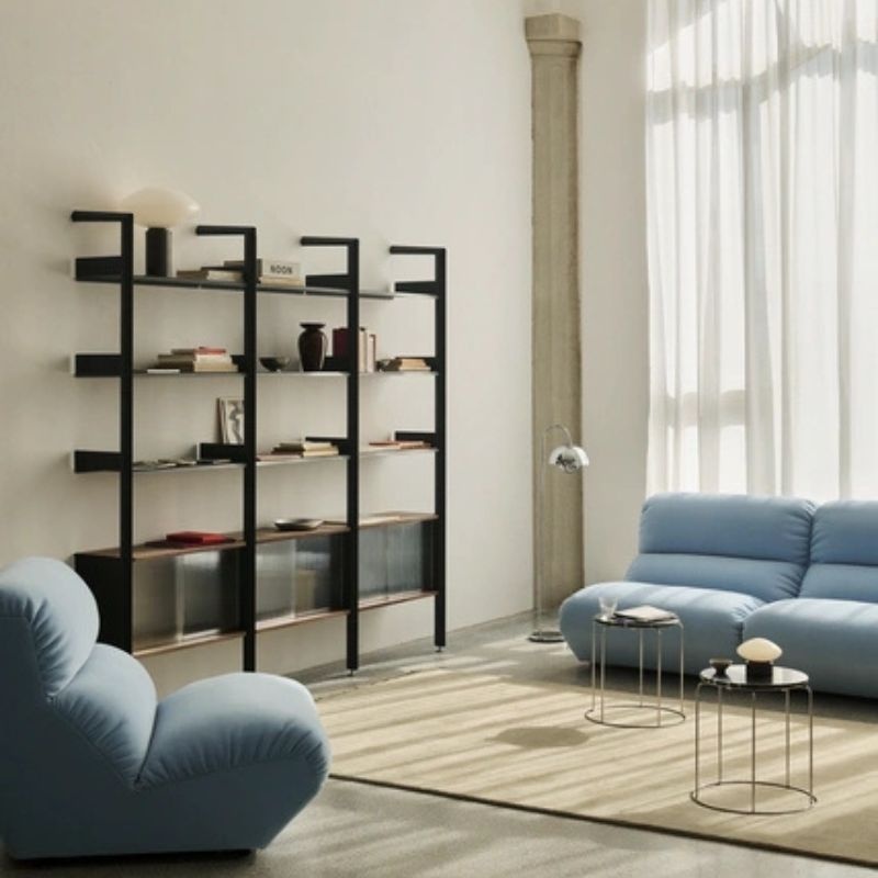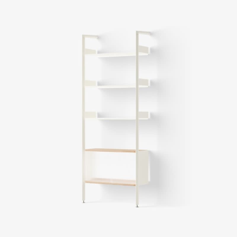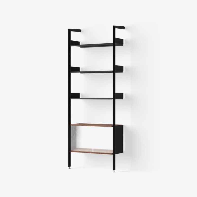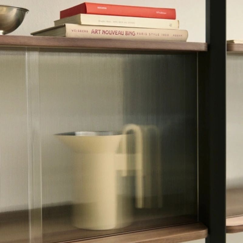 La bibliothèque murale Rombe IF3 d’&Tradition allie élégance et fonctionnalité. Cette variante est équipée d’un compartiment avec portes en verre cannelé, parfait pour dissimuler vos objets avec style tout en préservant la légèreté visuelle du meuble.