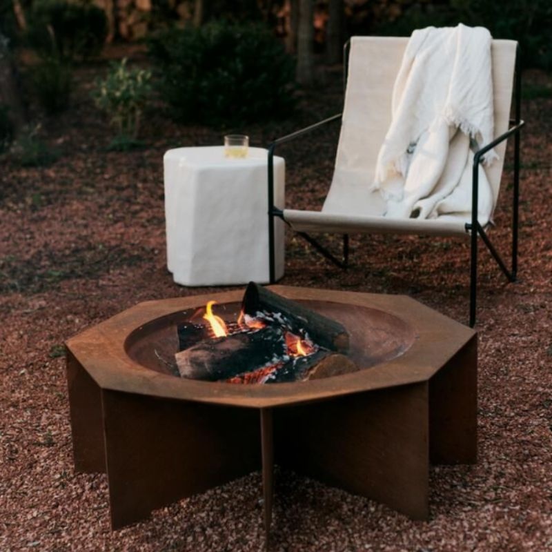 Fabriqué en acier corten, ce brasero développe au fil du temps une patine rouillée unique. Résistant aux intempéries, il devient une véritable sculpture vivante dans votre jardin.