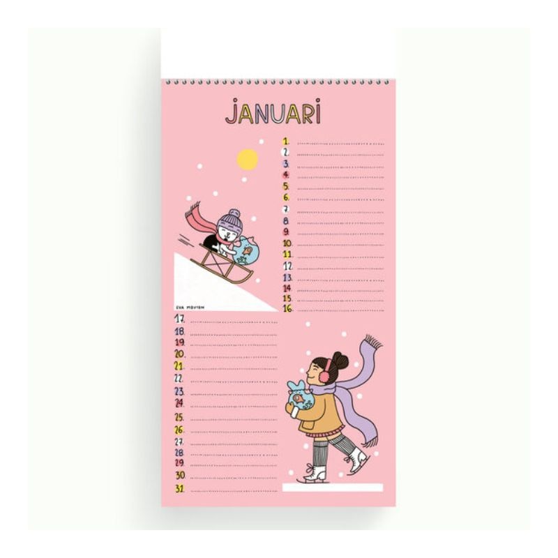 Avec le calendrier d’anniversaire d’Eva Mouton, apportez une touche d’humour et de couleur à votre intérieur — même dans la plus petite pièce de la maison ! Chaque mois présente une illustration drôle et décalée, typique du style d’Eva Mouton. Vous n’oublierez plus jamais les anniversaires de votre tante éloignée… ni celui de votre chat !