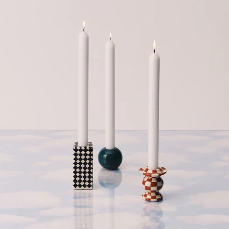 Disponible en trois formes distinctes, chaque bougeoir raconte sa propre histoire. Parfait pour habiller une table, une cheminée ou une étagère, seul ou en composition. Chaque pièce est peinte à la main, ce qui lui donne un caractère unique et un charme irrésistible.