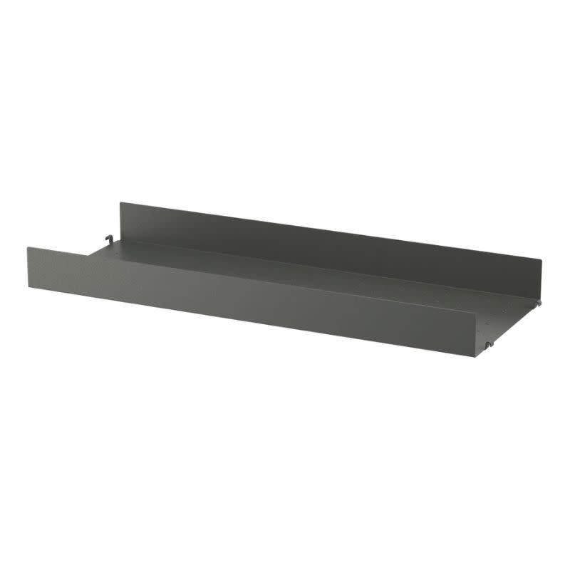 Ces étagères métalliques String s'adaptent à tous les intérieurs et peuvent être combinées avec les autres parties des meubles String. Les étagères métalliques pratiques ont un rebord, ce qui permet de conserver certains objets en toute sécurité derrière le rebord. Chaque étagère comporte des trous, sur lesquels vous pouvez accrocher divers accessoires, tels que des crochets.