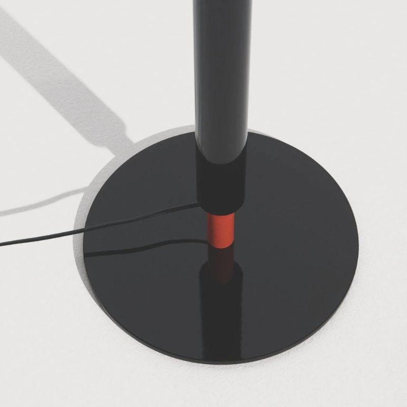 La lampe présente une structure tubulaire en acier avec une cloche en acier, disponible dans des couleurs inspirées du design italien du siècle dernier : jaune vif, rouge piment, blanc et noir. La lumière LED indirecte et dimmable crée une lueur douce qui illumine la pièce sans éblouir. Cette lampe est idéale pour un salon moderne, un bureau ou un coin lecture, apportant à la fois lumière et style.