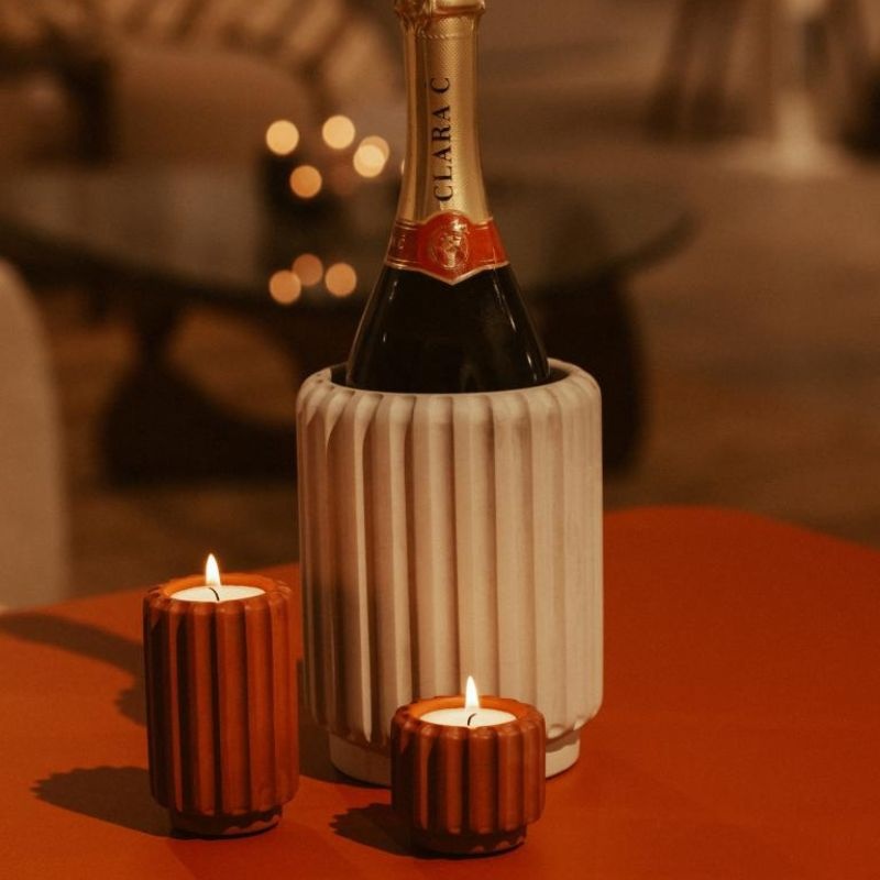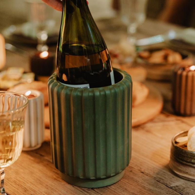 Le rafraîchisseur à vin d’Atelier Pierre est un accessoire de table raffiné en ciment, conçu pour garder chaque bouteille parfaitement fraîche. Son look minimaliste ajoute une touche élégante à vos dîners, apéritifs ou soirées tranquilles à la maison.