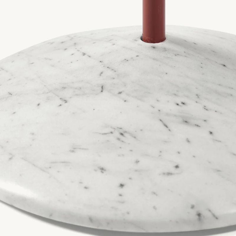 Muller Van Severen, le duo belge reconnu pour leur minimalisme ludique, présente la Standing Lamp Marble comme prolongement de leurs iconiques Hanging Lamps. Cette lampe sur pied conserve le même esprit minimaliste, avec un bras en métal fin et une base en marbre.