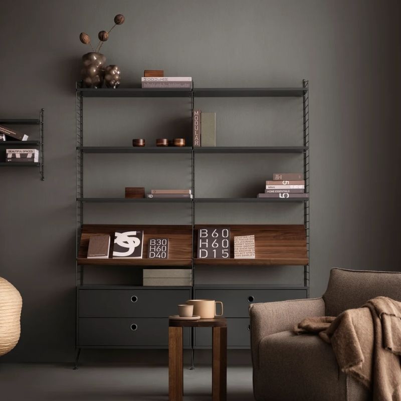 Le Système String est un des produits les plus populaires du label design String! Cette étagère murale est extrêmement pratique offrant multiples fonctionnalités qui sont infiniment à combiner. Il suffit d'avoir 2 montants et 3 planches pour commencer.
