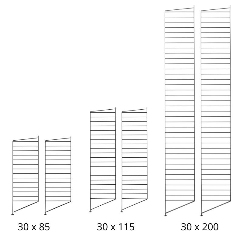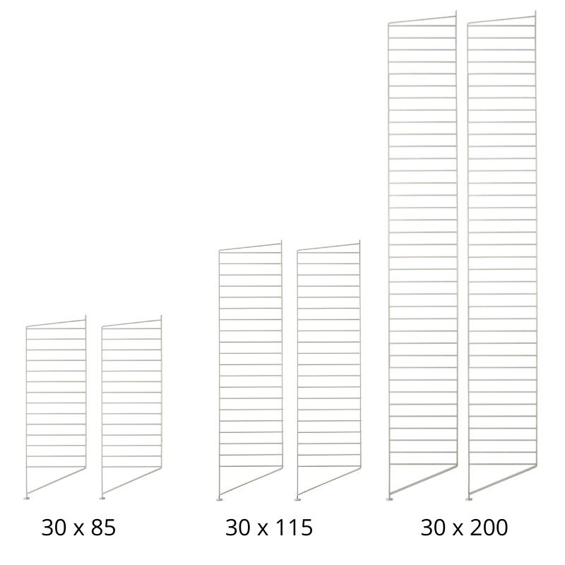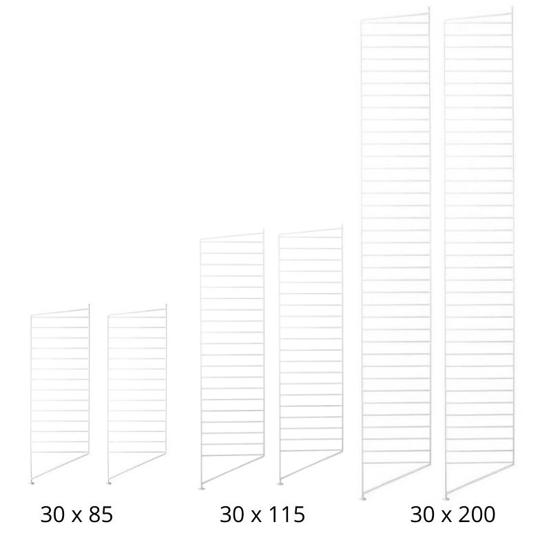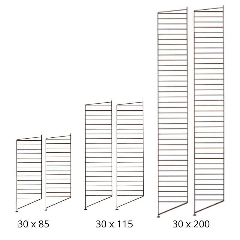 Les montants, les étagères, les plateaux bureau et les commodes peuvent toutes être commandées séparément afin d’assembler votre propre étagère. Besoin d’un peu d’aide? Avec le configurateur String vous pouvez facilement simuler n’importe quelle composition. Ensuite vous pouvez commander les différentes parties chez nous en ligne. Si vous avez des questions, n’hésitez pas à nous contacter par téléphone ou par mail : [email protected].