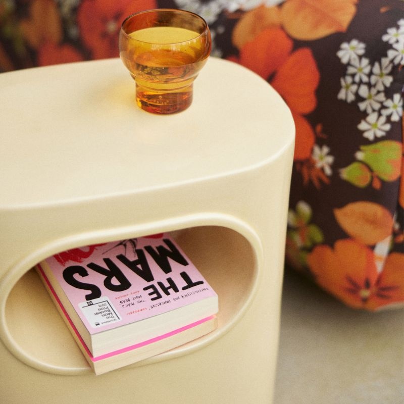 Le creux central sert à la fois de rangement pratique pour vos magazines ou accessoires, et de détail décoratif original. Sa surface lisse et vernie est facile à entretenir et très résistante.