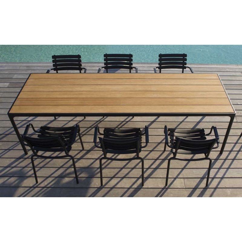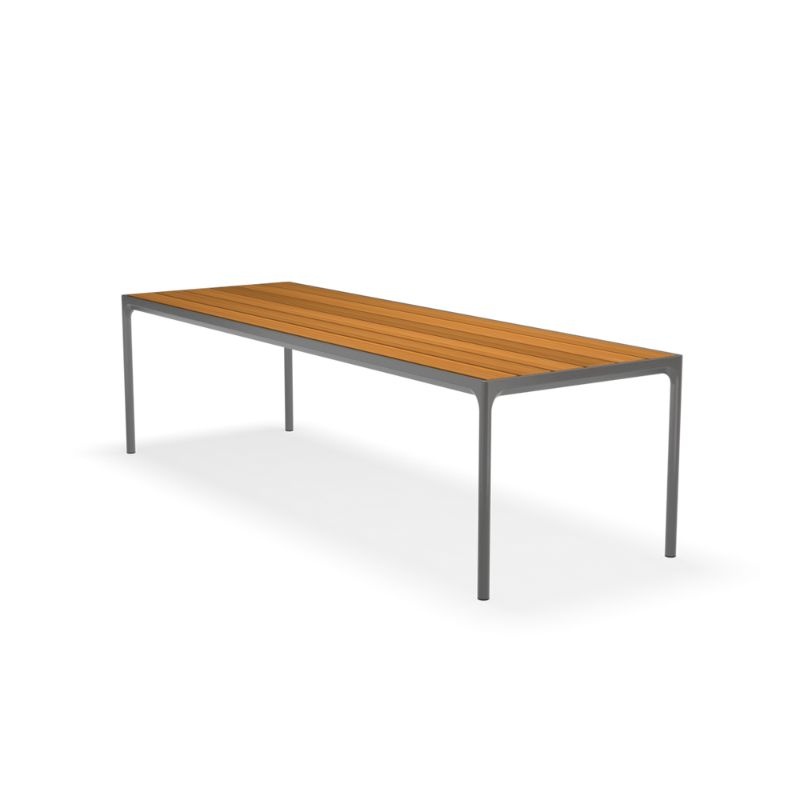 La table de jardin Four de Houe combine un design robuste et des matériaux modernes, idéale pour une utilisation extérieure. Le cadre est fabriqué en aluminium laqué gris foncé, garantissant durabilité et une finition soignée. Le plateau est composé de lamelles de bambou, apportant à la table un caractère naturel et contemporain.