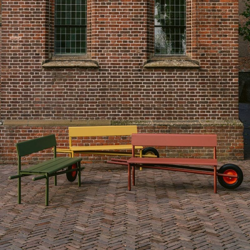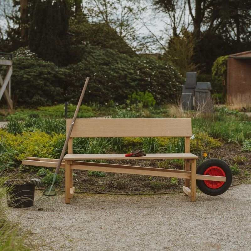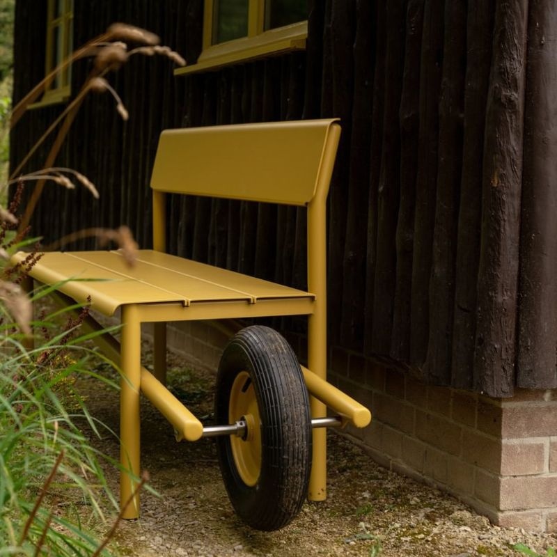 Le banc Wheelbench de Weltevree, conçu par Rogier Martens, est un banc extérieur mobile alliant design et fonctionnalité. Son concept original, qui associe un banc classique à une roue de brouette, permet de le déplacer facilement vers le soleil, l’ombre ou un coin abrité.