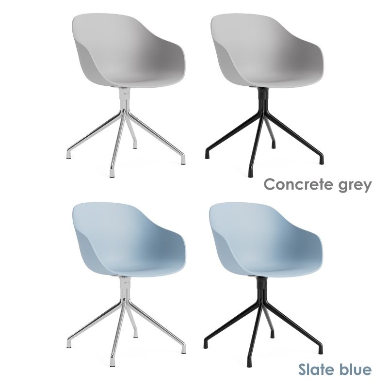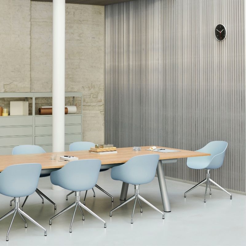 De AAC220 van HAY maakt deel uit van de iconische About A Chair-collectie. Dankzij het elegante 4-ster draaiframe in aluminium heeft deze stoel een iets formelere, moderne look, perfect voor eetkamers, home offices of vergaderruimtes.