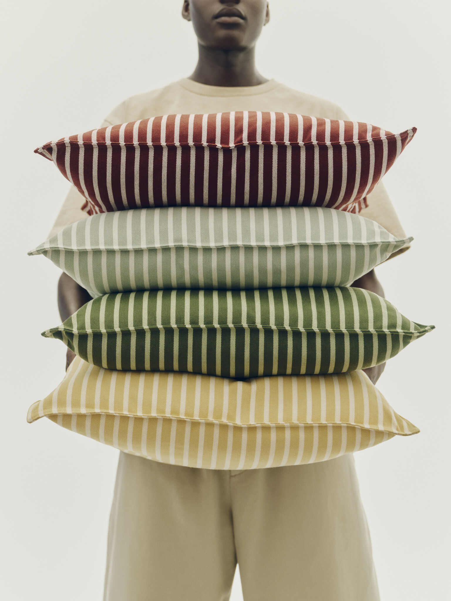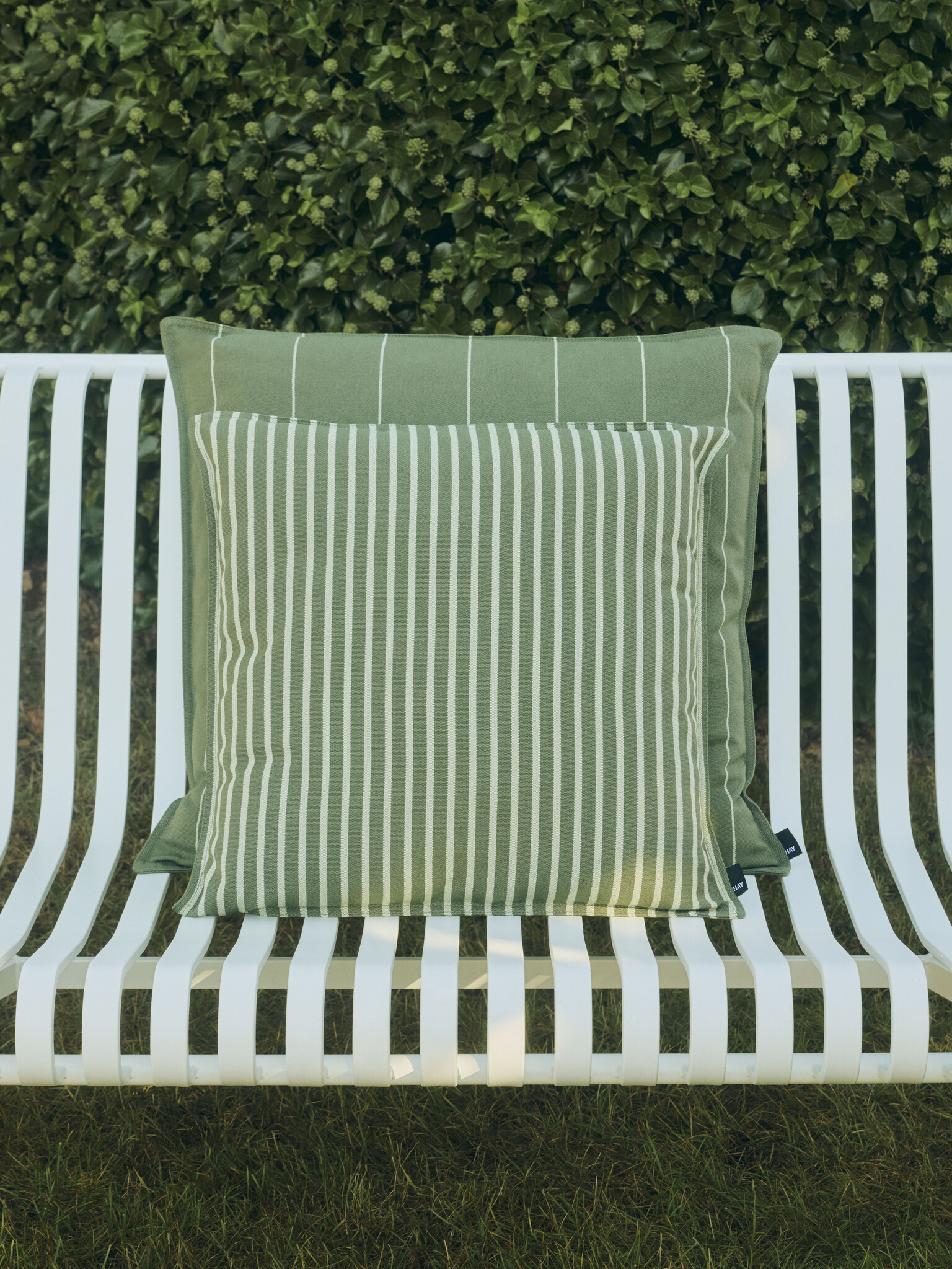 De gestreepte kussens brengen meteen kleur op je terras. Ze zijn speciaal ontwikkeld voor buitengebruik en beschikbaar in 4 gestreepte kleuren. Ze behouden hun vorm en uitstraling, ook bij intensief gebruik.