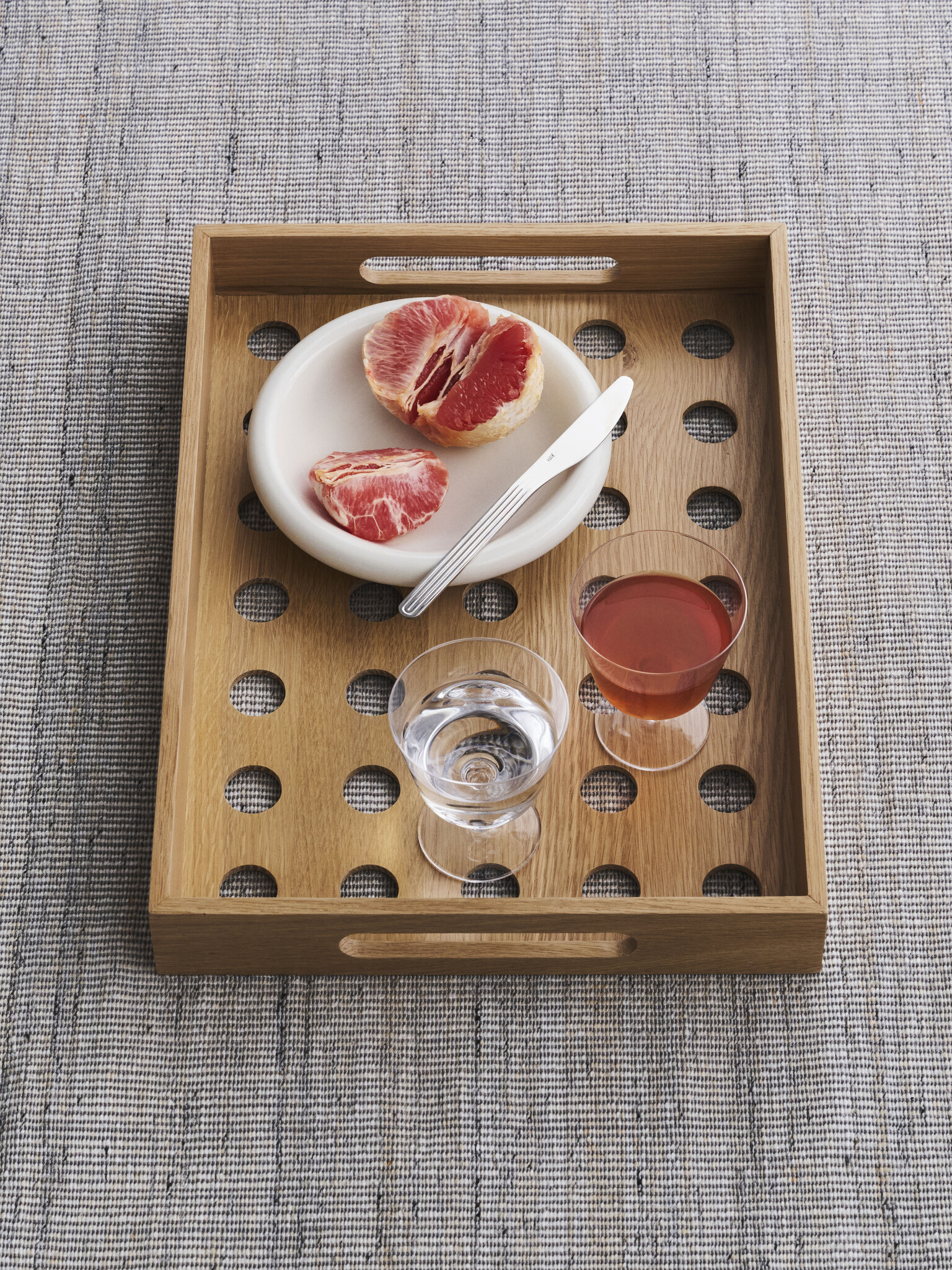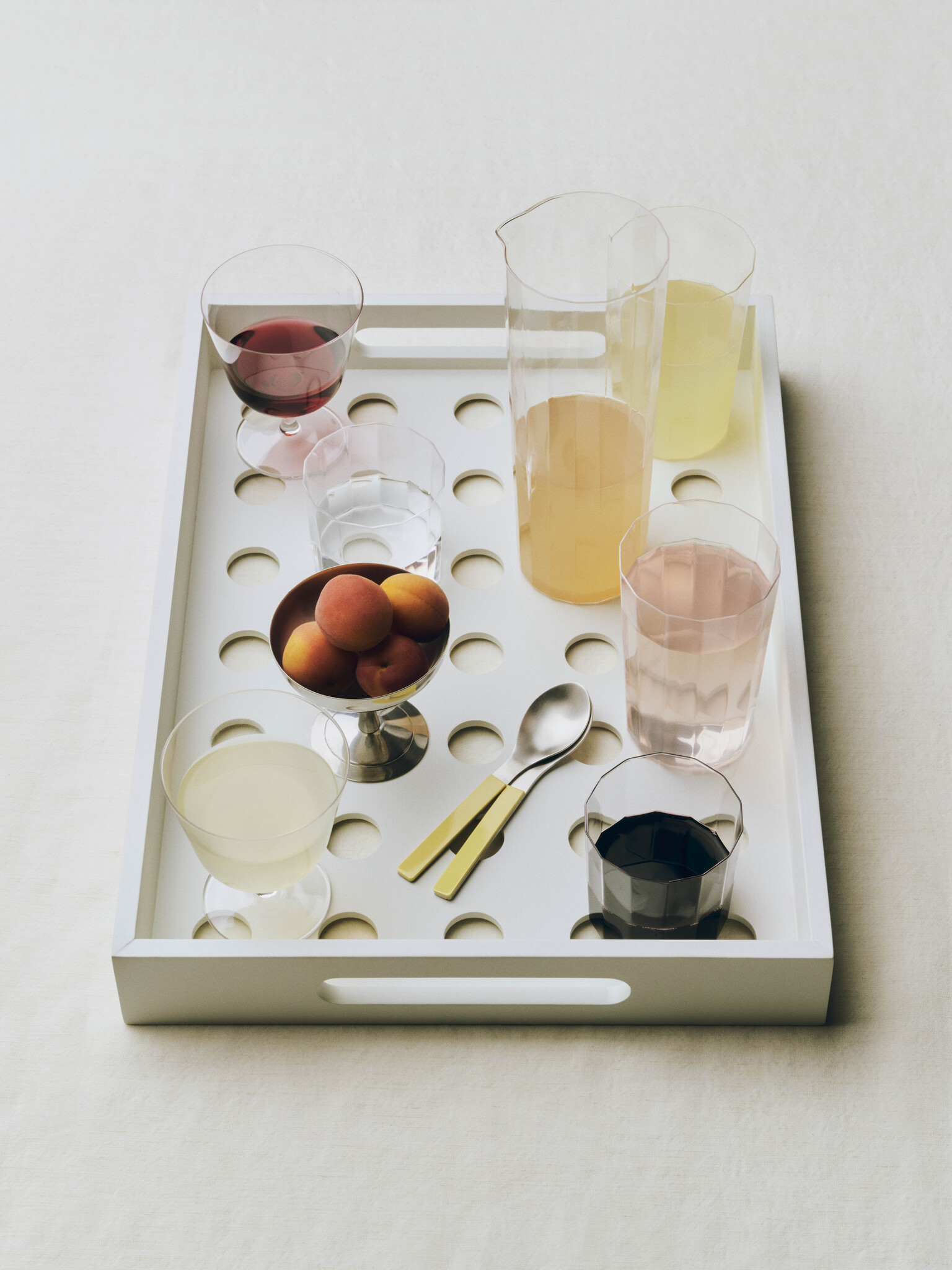 Grafisch en speels. Handig om drankjes te serveren, maar ook mooi als decoratief element op tafel.