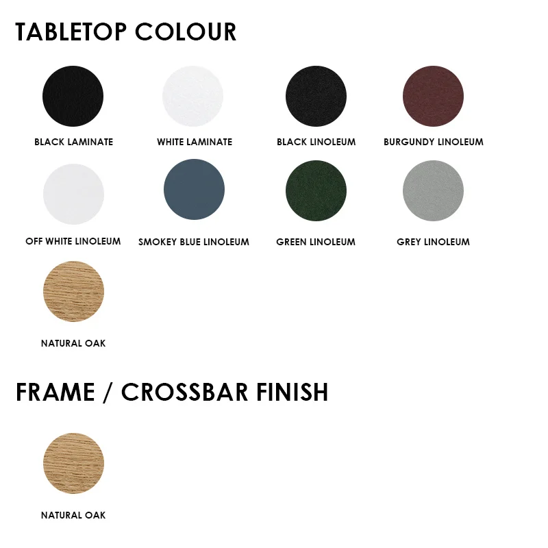 Belangrijk: De rand van het tafelblad is altijd in de kleur van het onderstel.