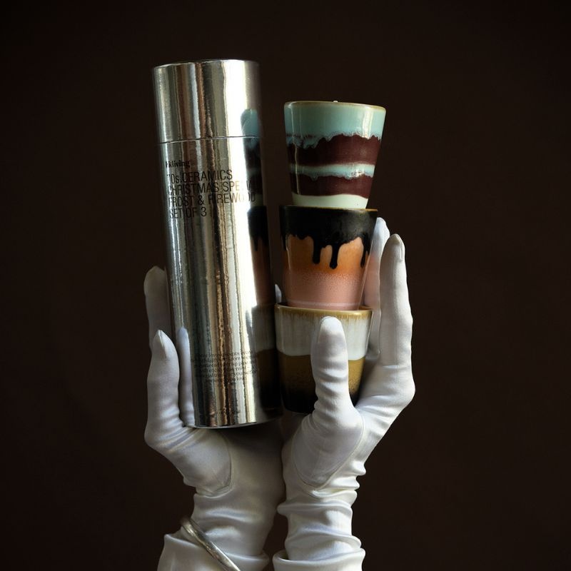 Na het opbranden blijven drie prachtige keramische mokjes over die je kunt gebruiken voor koffie, espresso of als mini bowl. Een geschenk dat blijft geven, functioneel, sfeervol en met die heerlijke retro-touch die HKliving zo populair maakt.