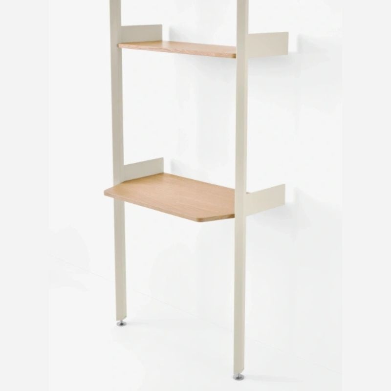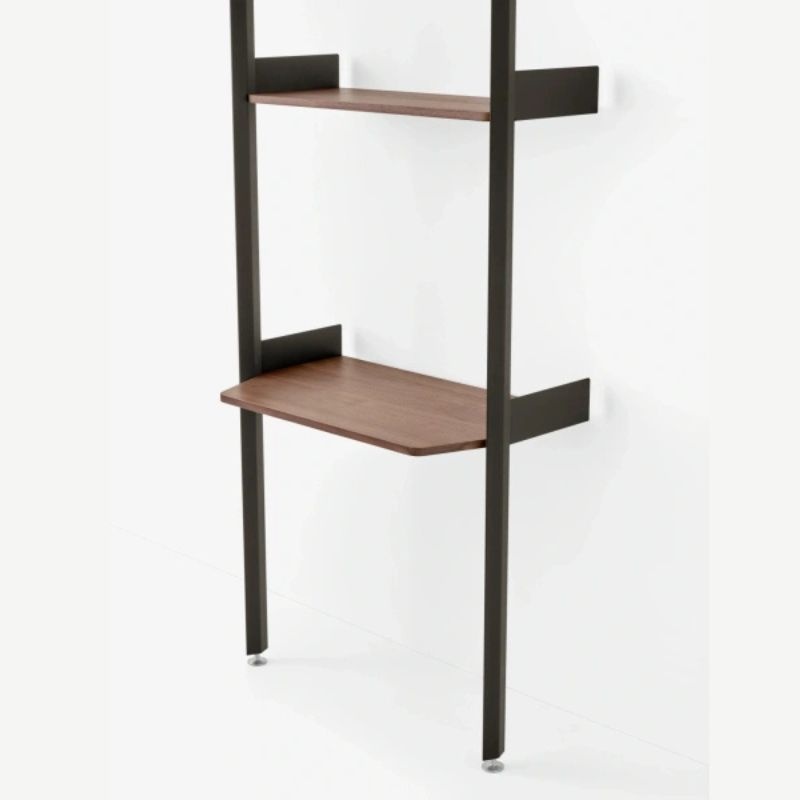 Net als de andere varianten uit de Rombe-collectie, is Configuratie B vervaardigd uit FSC®-gecertificeerd hout, aluminium en gepoedercoat staal. De strakke lijnen en verfijnde details maken van dit meubel een sculpturaal geheel dat zowel opbergruimte als een functioneel werkblad biedt – perfect voor thuiswerken of creatieve projecten.