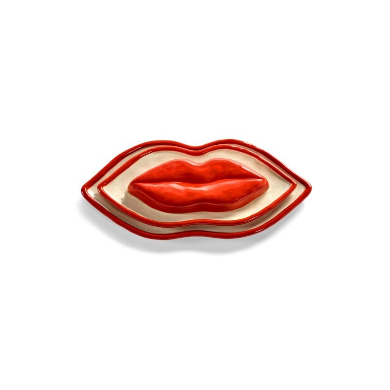 De Serveerschaal met rode lippen bestaat uit drie onderdelen, die je afzonderlijk kunt kopen en combineren.