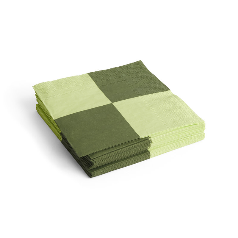 De servetten met patronen van HAY komen in verschillende kleuren, designs en twee formaten. De servetten zijn gemaakt van tissuepapier dat FSC- en Nordic Swan Ecolabel-gecertificeerd is. De kleurrijke patronen bieden een decoratief detail aan de tafel en tillen alledaagse maaltijden naar een hoger niveau.