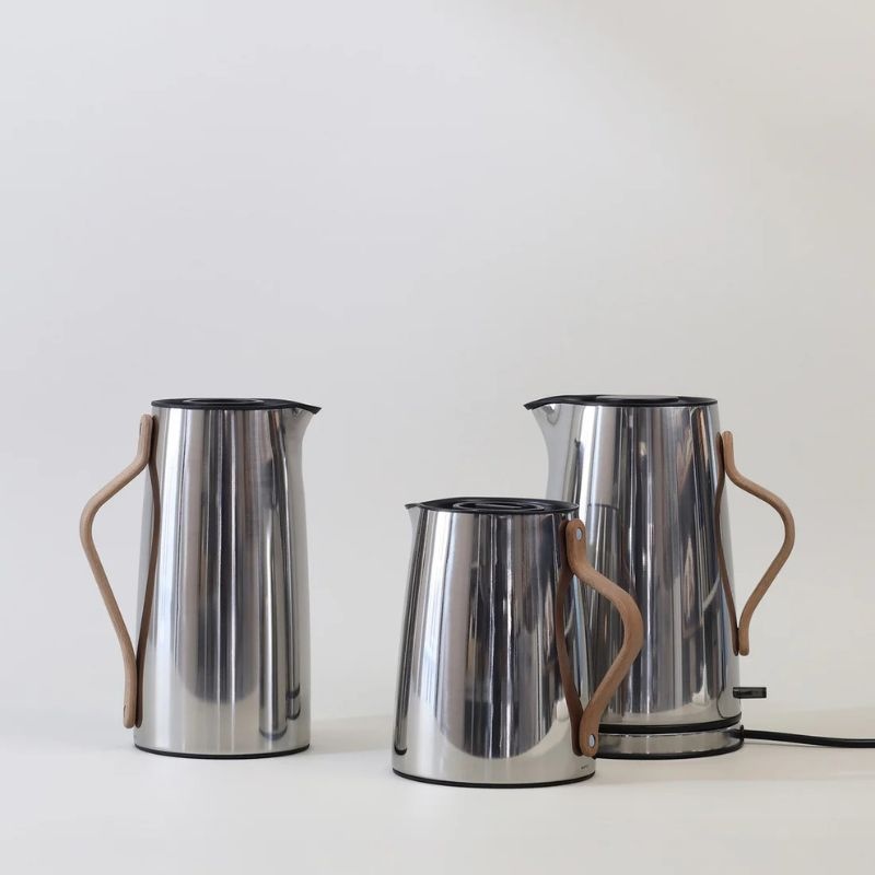 de Emma koffiekan (1,2 liter), met een handige klikdop waarmee je eenvoudig met één hand schenkt, en de Emma theekan (1 liter) met een geïntegreerd theefilter dat je met een eenvoudige draai sluit om het trekken van de thee te stoppen op het perfecte moment.